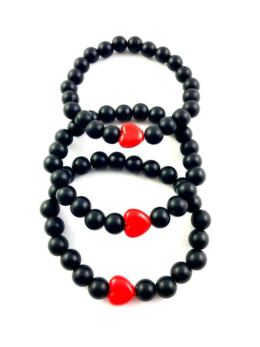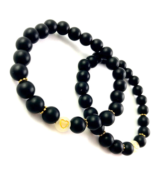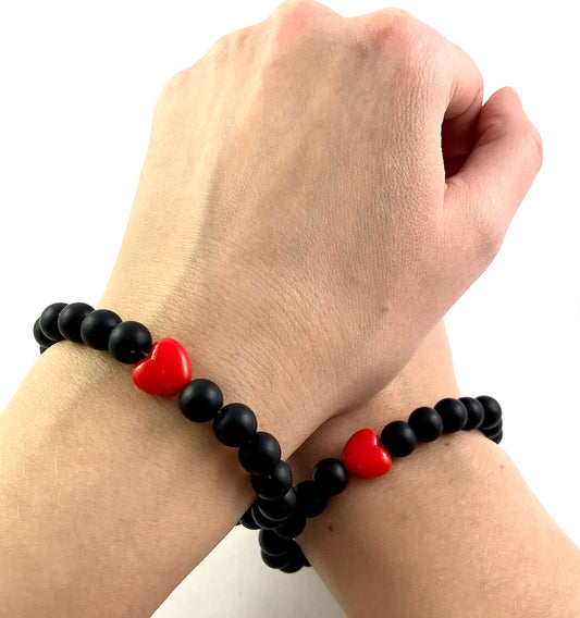 Korálkové náramky set 2 ks čierne so srdiečkami