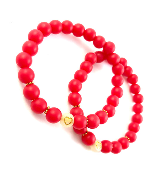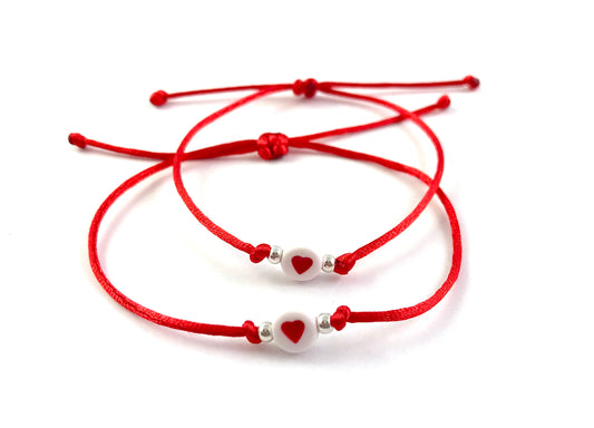 Šnúrkové náramky pre najlepšie kamarátky BFF so srdiečkom červené