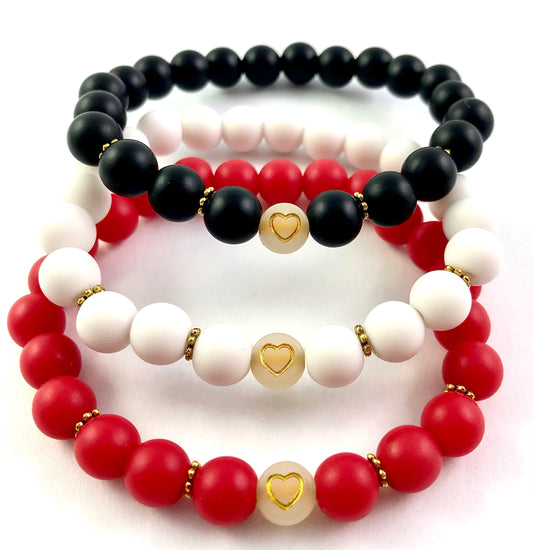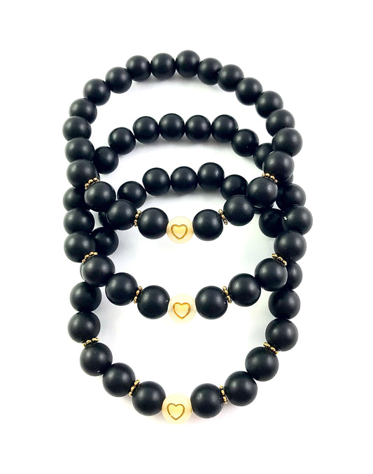 Korálkové náramky sada 3 ks so srdiečkami čierne
