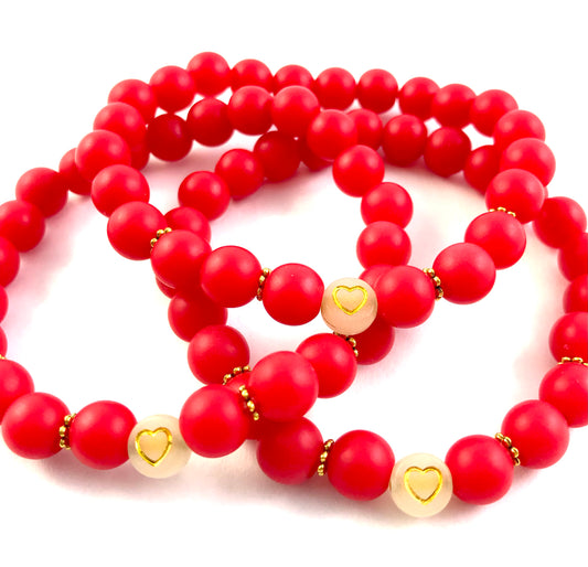 Korálkové náramky set 3 ks mix farieb so srdiečkami