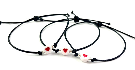 Šnúrkové náramky set 3 ks červené so srdiečkom