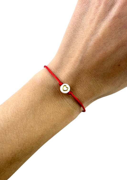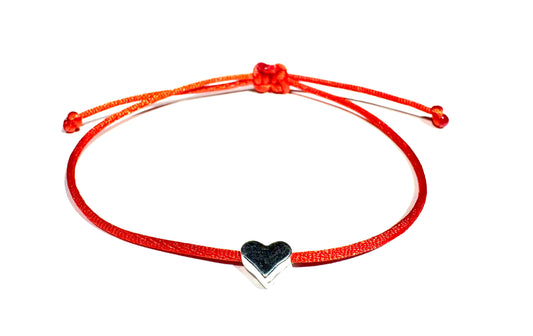 Šnúrkový náramok proti urieknutiu so srdiečkom červený