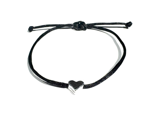Tenký šnúrkový náramok s čiernym srdiečkom nastaviteľný