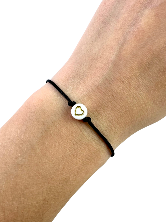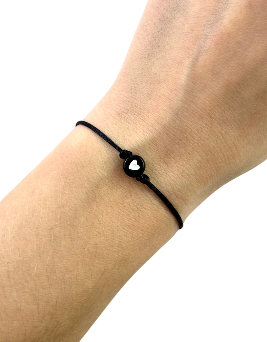 Tenký šnúrkový náramok s čiernym srdiečkom