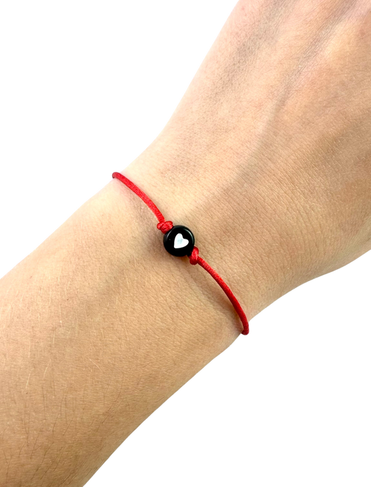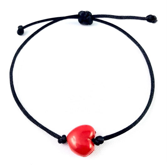 Tenký šnúrkový náramok so srdiečkom červený čierny