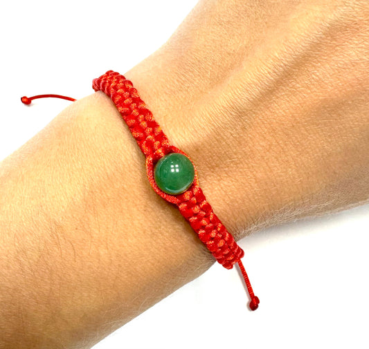 Pletený šnúrkový náramok Zelený Avanturín červený dámsky