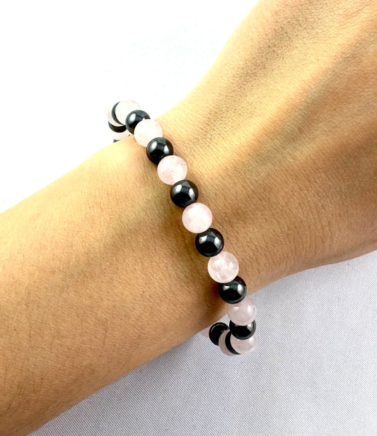 Náramok z minerálov Ruženínu a Hematitu 8 mm ružovo-sivý