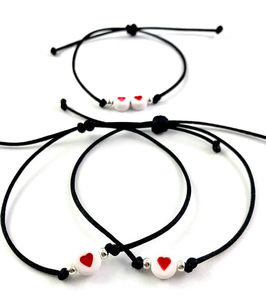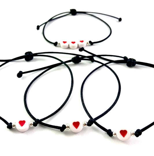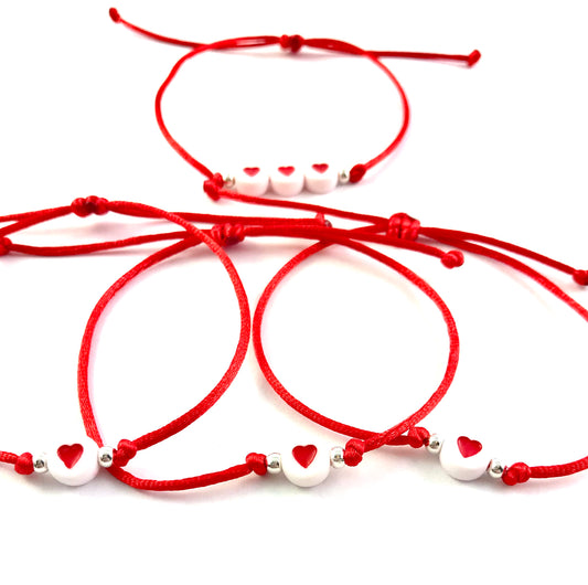 Šnúrkové náramky set 4 ks červené so srdiečkami